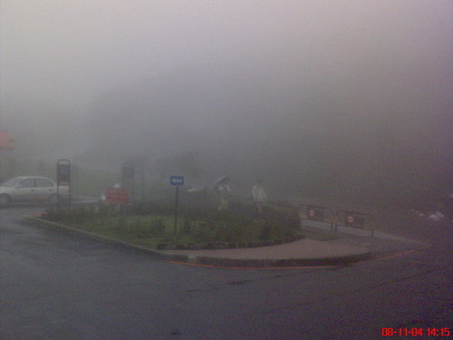 雨變大了 霧更濃了...氣溫也很低 穿著風衣都還覺得會冷....